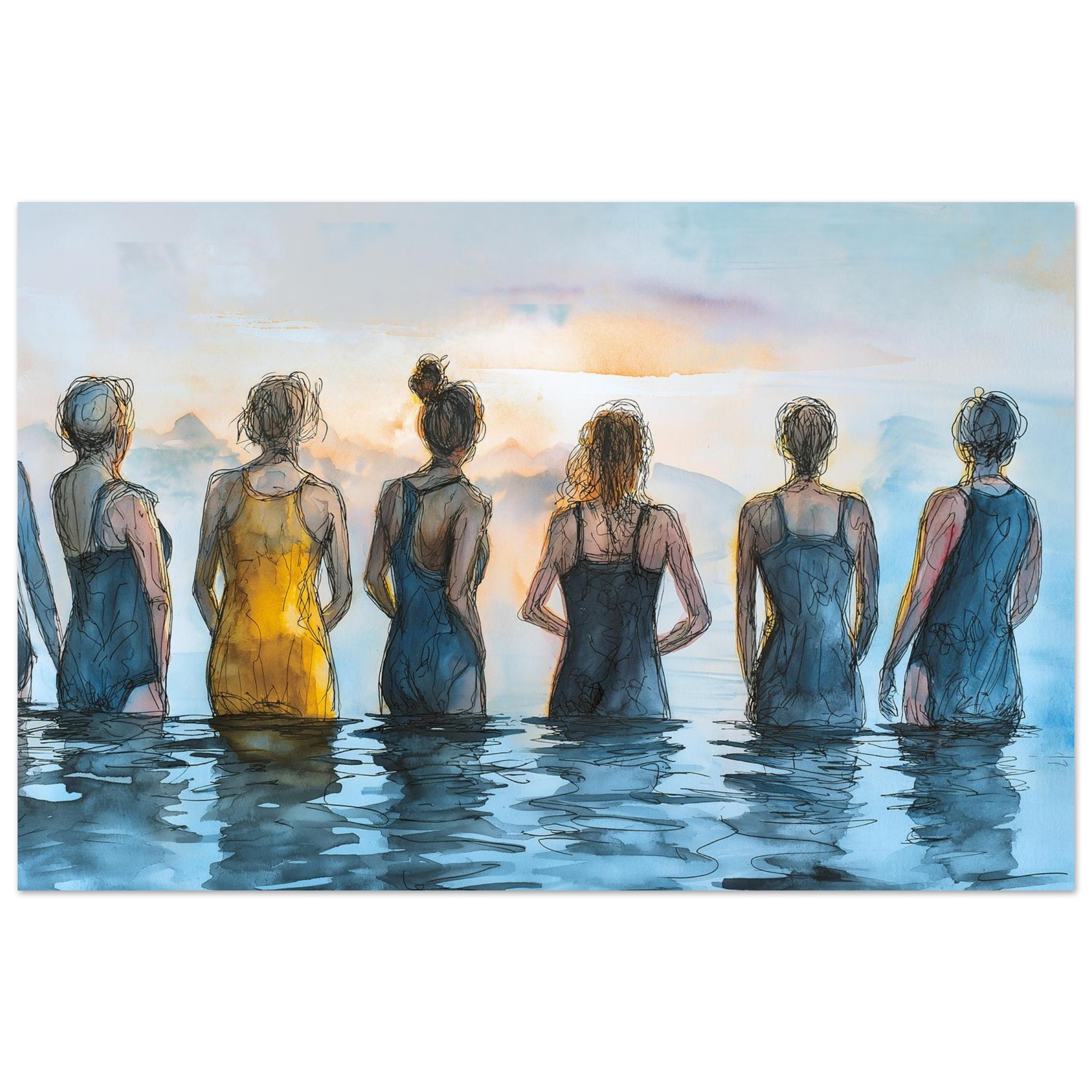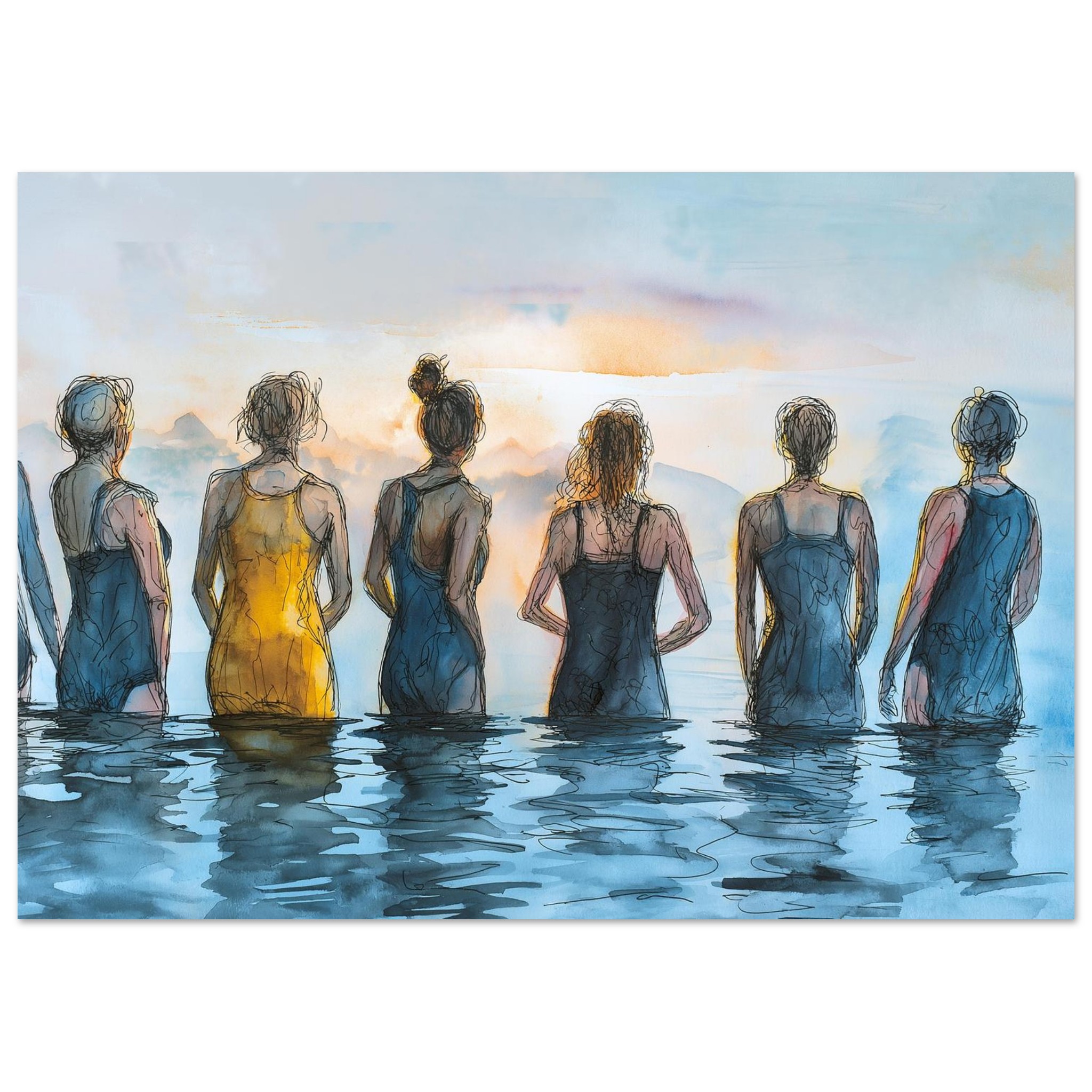 Awaken your space with the quiet intensity of First Light, Cold Embrace, a fine art print that captures the ethereal stillness of early morning open water. Inspired by the raw beauty experienced by wild swimmers at the break of day, this artwork is a tribute to the solitude, strength, and serenity found in cold water immersion.