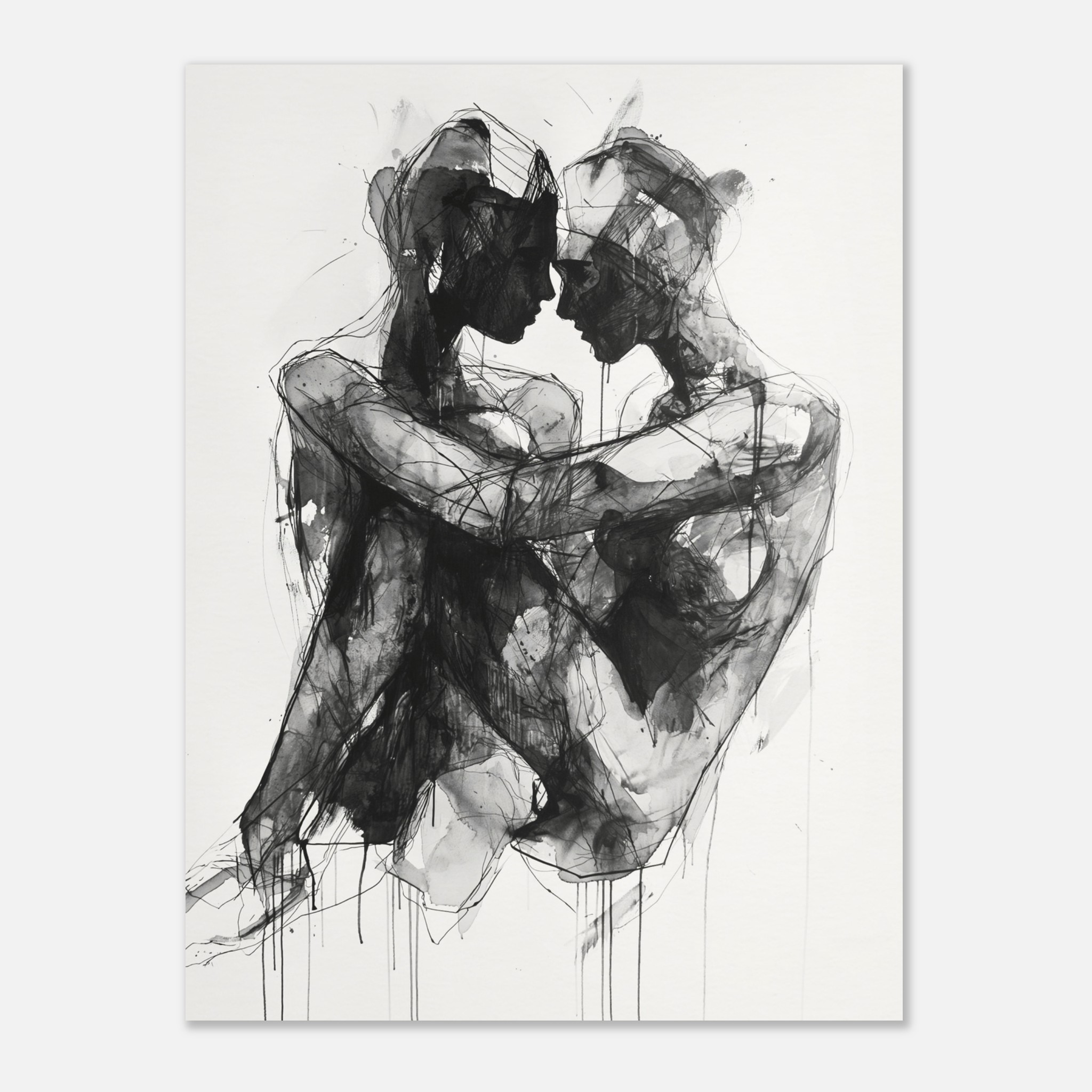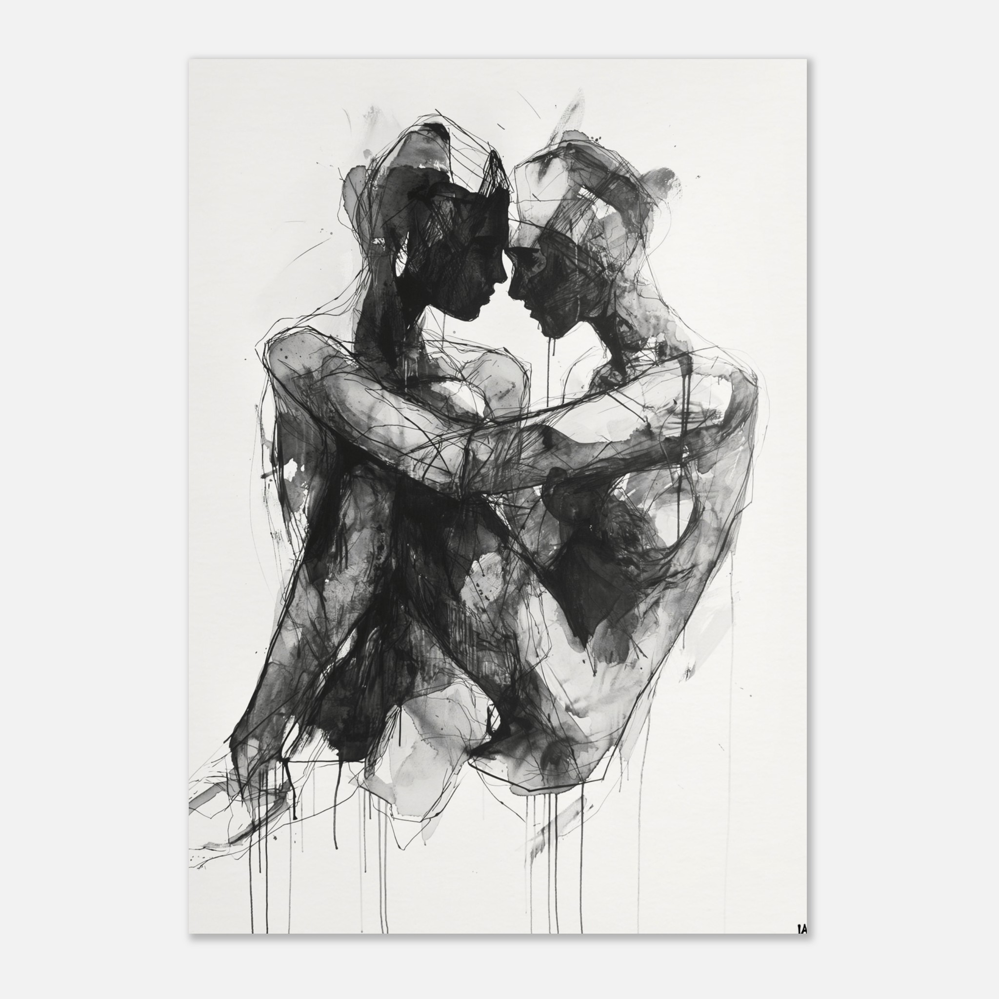 Introducing “Gaze of Connection”, a limited series print where silence speaks louder than words. This contemporary art piece captures the profound intensity and emotional depth within a couple’s gaze, communicated through a striking abstract form. It’s a powerful representation of the unvoiced connections that resonate in modern relationships.